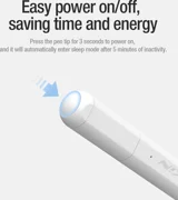 Mit einer Betriebszeit von bis zu 10 Stunden nach einer vollen Aufladung kann der Nillkin iSketch S3-Stift Ihnen lange dienen. Das Aufladen dauert nur 45 Minuten, sodass Sie im Handumdrehen wieder arbeiten können. Möchten Sie den Ladezustand des Akkus kontrollieren? Verbinden Sie ihn einfach über Bluetooth mit Ihrem iPad! Außerdem wird der Schlafmodus nach 5 Minuten Inaktivität automatisch aktiviert, um Strom zu sparen und die Arbeitszeit des Stiftes zu verlängern.