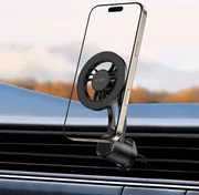 Die Halterung wird am Windschutzscheibengitter befestigt und verfügt über einen beweglichen Arm mit 360°-Drehfunktion, so dass das Telefon in jedem beliebigen Winkel - vertikal oder horizontal - positioniert werden kann. Außerdem fügen sich die robuste Konstruktion und das minimalistische Design perfekt in den Innenraum eines jeden Autos ein.