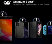 Darüber hinaus verfügt das Ladegerät über einen eingebauten Quantum-Boost-Chip, der die optimale Spannung für Ihr spezielles Gerät anpasst. Ihr Gerät erhält genau die Strommenge, die es braucht, um sich in kürzester Zeit zu erholen, ohne dabei eine Beschädigung des Akkus zu riskieren.