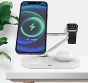 Mit dem multifunktionalen Induktionsladegerät Tech-Protect können Sie drei Geräte gleichzeitig oder vollständig getrennt aufladen - iPhone mit MagSafe, Airpods und Apple Watch. Einfaches, aber funktionales Design mit einer matten Oberfläche verleiht ihm ein sehr ästhetisches Aussehen.