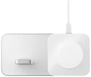 Das integrierte Ladegerät der Apple Watch verfügt über eine schützende Soft-Touch-Ladestation. Auf diese Weise können Sie den Nachttischmodus Ihrer Uhr verwenden, während das integrierte MagSafe-Ladegerät für die Stromversorgung von AirPods oder iPhones verwendet werden kann.