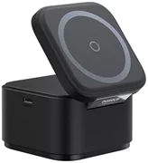 Baseus MagPro bietet sowohl kabelgebundenes als auch kabelloses Laden. Darüber hinaus zeichnet es sich durch seine breite Kompatibilität aus und bietet eine Reihe von Sicherheitsfunktionen, sodass Sie es bedenkenlos verwenden können. Es ist mit einem einziehbaren Kabel und einem zusätzlichen USB-C-Anschluss zum Aufladen Ihrer Apple Watch ausgestattet. Sie eignet sich sowohl für die Arbeit als auch für Reisen. Dank ihres leichten und kompakten Designs lässt sie sich leicht verstauen.