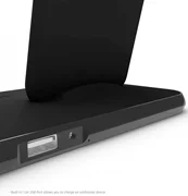 Das ZENS Stand+Dock+Watch Aluminium Wireless Charger wurde entwickelt, um ein Smartphone, AirPods und eine Apple Watch gleichzeitig aufzuladen. Es unterstützt Apple Fast Charge, wird mit einem Netzteil geliefert und hat eine Gesamtleistung von 20 W, um das dreifache Laden von Geräten zu unterstützen. Der eingebaute USB-Anschluss ermöglicht das Laden eines vierten Geräts. Das Ladegerät ist mit allen Modellen der Apple Watch (Serie 1, 2, 3, 4, 5) kompatibel und kann sowohl AirPods 1 als auch 2 aufladen, ohne dass eine kabellose Ladehülle erforderlich ist. Es ist eine ideale Dockingstation für zu Hause oder im Büro, damit Ihre Geräte jederzeit aufgeladen sind.