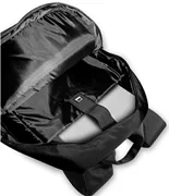Im Inneren des Rucksacks gibt es ein Fach für einen 16-Zoll-Laptop wie ein MacBook Pro und eine Slim-Fit-Tasche für ein iPad Mini oder ein Tablet. Er verfügt über flache Taschen für Dokumente, Telefon, Powerbank usw. und zwei Seitentaschen für Flaschen.