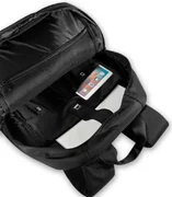 Im Inneren des Rucksacks gibt es ein Fach für einen Laptop bis zu 16", wie z.B. ein MacBook Pro, und eine Slim-Fit-Tasche für ein Tablet, wie z.B. ein iPad mini. Der Rucksack verfügt über flache Taschen für Dokumente, Telefon, Powerbank usw. und zwei Seitentaschen für Flaschen.