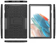 Zweiteiliges Gehäuse, das aus einem Innenteil aus Gummi und einer Außenhülle aus strapazierfähigem mattem Polycarbonat besteht, wo ein funktionaler Ständer verwendet wird.