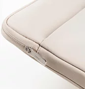 Die Tasche ist innen weich gepolstert und außen mit einer wasserdichten Nylonbeschichtung versehen, um den Laptop vor den Elementen zu schützen.