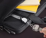 Strapazierfähige Griffe und ein abnehmbarer Schultergurt ermöglichen es, die Tasche sowohl als Aktentasche als auch als Umhängetasche zu verwenden. Die Tasche ist mit einem versteckten Schlüsselhalter und einem verdeckten Reißverschluss ausgestattet und verfügt über einen Magneten, der sich leicht über einem Koffergriff befestigen lässt. Auf der Vorderseite der Stockholm-Tasche befindet sich ein zusätzliches, leicht zugängliches Fach zur Aufbewahrung anderer wichtiger Gegenstände.