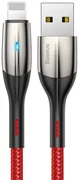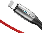 Das horizontale Baseus Kabel ist MFI-zertifiziert (Made for iPhone), was den störungsfreien Betrieb von iPhones beweist. Das Kabel ermöglicht das Laden und Übertragen von Dateien zwischen Geräten, die mit einem USB-Eingang ausgestattet sind, und Apple-Geräten, die mit einem Lightning-Eingang ausgestattet sind. Aluminiumspitzen, geflochtene Schläuche und verstärkte Gummibindung sorgen für eine hohe Haltbarkeit. Das Kabel unterstützt das ultraschnelle Laden von bis zu 2,4 A, und eine LED-Lampe zeigt den Ladestatus an.