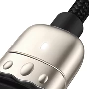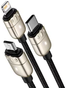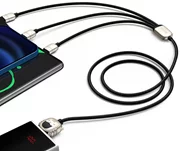 Das 3-Port-Kabel von Baseus lädt Geräte wie iPhone, Smartphone mit USB-C-Anschluss, zum Beispiel Samsung und andere Geräte mit Micro-USB-Schnittstelle, zum Beispiel OPPO. Sie können mehrere Geräte gleichzeitig aufladen, indem Sie den Strom intelligent und gleichmäßig verteilen. Darüber hinaus ist der Kupferkern für eine stabile Übertragung verantwortlich und leitet die Wärme gut ab.