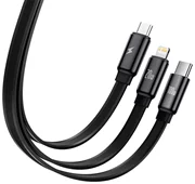 Sie müssen nicht länger auf unbestimmte Zeit warten, bis Ihr Gerät aufgeladen ist! Das Baseus-Kabel verfügt über 3 Anschlüsse, sodass Sie die Stromversorgung mehrerer Geräte gleichzeitig erneuern können. Über den Lightning-Anschluss (20 Watt) können Sie ein iPhone 8-13 aufladen, während der USB-C (100 Watt) Geräte von Apple, Huawei, Xiaomi, Samsung usw. auflädt. In der Zwischenzeit laden Sie eine Powerbank, einen Lautsprecher oder einen Lüfter über den Micro-USB-Anschluss auf. Darüber hinaus laden Sie mit dem PD 100 W ein MacBook Pro 2019 in etwa 2 h und ein iPhone 13 Pro Max in etwa 1,5 h auf.