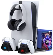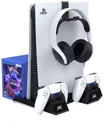 Jetzt kannst du deine PS5 und ihr Zubehör an einem Ort aufbewahren! Der iPega-Ständer sorgt nicht nur für Ordnung, sondern lädt auch 2 Controller gleichzeitig auf. Darüber hinaus verfügt es über 2 Lüfter, um eine Überhitzung Ihrer Hardware zu verhindern, und einen Haken für Kopfhörer oder VR-Brillen. Zusätzlich ist der PG-P5023 in zwei Farboptionen erhältlich: Schwarz und Weiß.