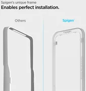 Das gehärtete Glas der AlignMaster-Serie von Spigen für wurde mit einem perfekten Schnitt an der Vorderseite des Telefons mit einem Montagerahmen befestigt, sodass Sie es perfekt auf dem Bildschirm positionieren können. Der Hersteller hat die Montagemethode so vereinfacht, dass sie für jeden Benutzer vollständig intuitiv ist.