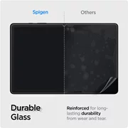 Kristallklares, gehärtetes Glas, das die angezeigten Farben brillant wiedergibt und die Berührungsempfindlichkeit nicht beeinträchtigt. Es besteht aus bearbeitetem und verstärktem gehärtetem Glas mit einer Dicke von 0,2 mm. Es hat eine Oberflächenhärte (Widerstandsgrad) von 9H und ist damit auch bei Kontakt mit scharfen Gegenständen (Messer, Schlüssel) extrem kratzfest.