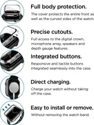 GanzkörperschutzDie Abdeckung schützt die gesamte Vorderseite sowie die gewölbten Seiten der Uhr.Glasklarheit und ReaktionsfähigkeitDie Eiger Mountain Glass Displayschutzfolien ermöglichen eine hochauflösende Display-Klarheit. Das ultradünne Glas ermöglicht eine reaktionsschnelle Touchscreen-Nutzung mit einem "kaum vorhandenen" Gefühl.Präzise AusschnitteVollständiger Zugang zum di