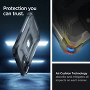 Entworfen auf der Grundlage einer fortschrittlichen Verbundkonstruktion - einer Kombination aus hochwertigem Thermopolyurethan und Polycarbonat - wurde ein Gehäuse erhalten, das eine sehr gute Sturz- und Kratzfestigkeit bietet.