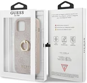Sammlung Guess 4G mit Ringständer. Es zeichnet sich durch eine elegante, karierte Textur aus, die Leder imitiert und mit einem praktischen ringförmigen Griff auf der Rückseite des Gehäuses verziert ist, sodass Sie Ihren Finger hineinlegen und Ihr Gerät bequem und sicher verwenden können. Saffiano verleiht Ihrem iPhone eine raffinierte Guess-Ästhetik und bietet einen gewissen Schutz.