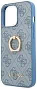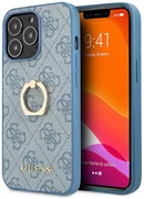 Sammlung Guess 4G mit Ringständer. Es zeichnet sich durch eine elegante, karierte Textur aus, die Leder imitiert und mit einem praktischen ringförmigen Griff auf der Rückseite des Gehäuses verziert ist, sodass Sie Ihren Finger hineinlegen und Ihr Gerät bequem und sicher verwenden können. Saffiano verleiht Ihrem iPhone eine raffinierte Guess-Ästhetik und bietet einen gewissen Schutz.