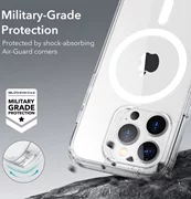 Classic Hybrid HaloLock von ESR ist eine einteilige Hülle, die aus einer transparenten Polycarbonatschicht besteht, die die Kanten und die Rückseite des Telefons umschließt, und einem haltbaren weichen Rahmen aus thermoplastischem, weichem Material, der das Gerät zusätzlich vor Stürzen schützt.