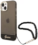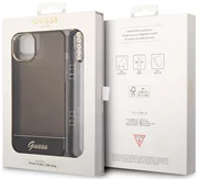 Guess-Hülle mit klassischem Charakter - eine transparente Hülle mit einem Armband mit Guess-Logo im Vintage-Stil. Ein Etui, das als einzigartige Alternative zu gewöhnlichen Handytaschen konzipiert wurde und einen einzigartigen, originellen Look bietet.