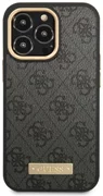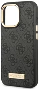 Guess 4G Logo Plate MagSafe ist eine elegante Kollektion, die mit einem goldenen Emblem mit dem Guess-Logo versehen ist.