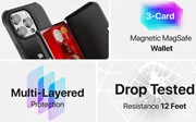 This case provides convenience, protection, and style and has been redesigned and precisely molded for the iPhone 14 Series. The iPhone 14 Pro Max card holder can securely hold your credit cards, ID, or transportation cards. We have engineered this iPhone wallet to fully support Apple MagSafe accessories and the cardholder provided attaches and detaches using Mag Safe magnets. If that wasn’t enough, we have also added a new secure locking design to support our upcoming armband and bike mount attachments. Beyond that, you of course get our heavy-duty shockproof protection with 12FT drop resistance and raised bumper edges to protect the camera lenses, flash, and screen.