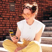 Der farbenfrohe Rahmen um die Kamera hebt das Objektiv über Oberflächen und schützt so vor Stürzen oder Kratzern und verleiht dem Ganzen ein stilvolles Aussehen.