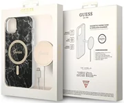 Ungewöhnliche visuelle Effekte werden durch goldene Accessoires in Form eines Rahmens um die Kamera und das Emblem des Modehauses Guess erzielt. Dank der Verwendung von goldenen Accessoires erhält die Tasche einen wärmeren Charakter. Für maximalen Benutzerkomfort ist die Tasche mit einem magnetischen Ring ausgestattet, der mit der MagSafe-Technologie kompatibel ist und ein schnelles, kabelloses Aufladen ermöglicht.