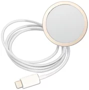Elegantes, goldfarbenes Induktionsladegerät, mit dem Sie kompatible Smartphones aufladen können, ohne sie an das Ladegerät anschließen zu müssen. Dank perfekt aufeinander abgestimmter Magnete haftet es fest am Gerät, was die Energierückgewinnung beschleunigt. Legen Sie das Gerät einfach direkt auf das Ladegerät und Ihr Telefon wird automatisch aufgeladen.