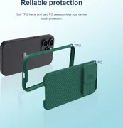 Das Nillkin CamShield Pro ist aus umweltfreundlichen PC- und TPU-Materialien gefertigt. Die rutschfeste Oberfläche an den Seiten bietet zusätzlichen Schutz und sorgt dafür, dass das Gehäuse perfekt in der Hand liegt. Darüber hinaus sieht es toll aus und fühlt sich angenehm an.