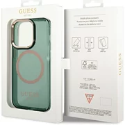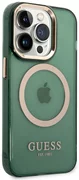 Die Hülle unterstreicht perfekt das einzigartige Design deines iPhones. Sie ist mit goldenen Elementen wie dem Rahmen um die Linsen, den Tasten und dem Guess-Logo verziert. Die Hülle ist mit einem magnetischen Ring ausgestattet, der mit dem kabellosen MagSafe-Ladegerät kompatibel ist und ein schnelles und einfaches Aufladen ermöglicht. Der magnetische Ring passt perfekt zu den Farben der Hülle.