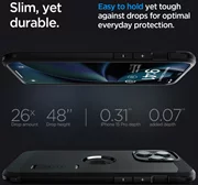 Gehäuse der SerieTough Armor Mag MarkenSpigen ist eine verbesserte Version seines Vorgängers.Das Gehäuse verfügt über einen magnetischen Ring, der mit dem MagSafe-Befestigungs- und kabellosen Ladesystem kompatibel ist und eine schnelle und einfache Nutzung der Apple-Technologie gewährleistet.