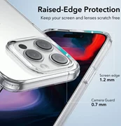 Die Hülle trennt sowohl das Display als auch die Kamera von flachen Oberflächen und verhindert so Kratzer an diesen empfindlichen Teilen des Geräts. Die transparente Rückseite des Gehäuses beeinträchtigt das Aussehen nicht wesentlich und vergrößert das Telefon nicht, so dass es sein elegantes, einzigartiges Design zeigen kann.