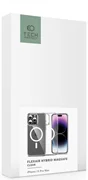 Ein klassisches, einteiliges Flexair Hybrid Magsafe-Gehäuse von Tech-Protect mit transparentem Finish, das die Linien und die ursprüngliche Silhouette des Geräts hervorhebt.