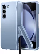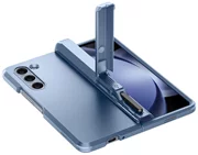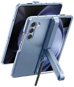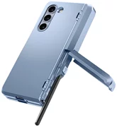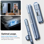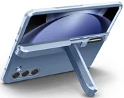 Die leicht erhöhte Form des Gehäuses um die Kamera und den Bildschirm schützt diese vor Kratzern und hebt das Telefon knapp über die flache Oberfläche. Es hat Tastenabdeckungen und Aussparungen für die Anschlüsse. Das Modell verfügt über einen funktionalen Kickstand.