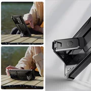 Ein wichtiges Element ist der funktionale Kickstand. Das einfach zu bedienende Bein dient sowohl als Ständer - mit dem das Telefon vertikal und horizontal positioniert werden kann - als auch als Fingergriff, um das Telefon sicher in der Hand zu halten.