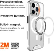 FallschutzDas Eiger Glacier Case wurde entwickelt und getestet, um Stürze aus 2 m Höhe zu überstehen, und die erhöhten Ränder des Gehäuses schützen Ihr Display.MagSafe-kompatibelVon Grund auf so konzipiert, dass sie vollständig MagSafe-kompatibel ist, können Sie die