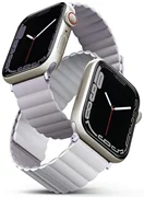 Uniq Revix - ein zweifarbiges Magnetarmband für die Apple Watch. Das zweifarbige, wendbare Design mit patentierten Verbindungsstücken bietet 3 Möglichkeiten, es zu tragen, so dass Sie mit einer Bewegung ganz einfach die Farbe wechseln können. Die innovative, starke und bequeme Magnetbefestigung ist auf eine Zugfestigkeit von bis zu 1,2 kg getestet und ermöglicht eine einfache Längenanpassung für eine perfekte Passform. Das Band besteht aus wasserfestem, waschbarem und komfortablem Silikon. Haben Sie Spaß mit den Farben und kreieren Sie Ihre eigenen einzigartigen Farbkombinationen.