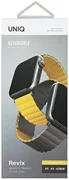 Uniq Revix - ein zweifarbiges Magnetarmband für die Apple Watch. Das zweifarbige, wendbare Design mit patentierten Verbindungsstücken bietet 3 Möglichkeiten, es zu tragen, so dass Sie mit einer Bewegung ganz einfach die Farbe wechseln können. Die innovative, starke und bequeme Magnetbefestigung ist auf eine Zugfestigkeit von bis zu 1,2 kg getestet und ermöglicht eine einfache Längenanpassung für eine perfekte Passform. Das Band besteht aus wasserfestem, waschbarem und komfortablem Silikon. Haben Sie Spaß mit den Farben und kreieren Sie Ihre eigenen einzigartigen Farbkombinationen.