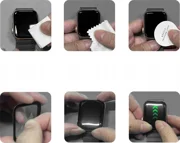 2 Reinigen Sie den Bildschirm der Uhr gründlich. Verwenden Sie ein feuchtes Tuch, um Schmutz und Fingerabdrücke zu entfernen. Wischen Sie den Bildschirm dann mit einem trockenen, weichen Tuch ab, um jegliche Feuchtigkeit vollständig zu entfernen. Verwenden Sie schließlich Reinigungsaufkleber (Staubaufkleber), um Staubpartikel und Staub zu entfernen.
