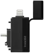 Genießen Sie die Hochgeschwindigkeitsübertragung von Dateien, ohne eine Wi-Fi-Verbindung herstellen zu müssen. Der Quick Reader wurde speziell für die Insta360 X3 entwickelt und kann als externer Speicher der Kamera fungieren - legen Sie einfach eine microSD-Karte ein (nicht im Lieferumfang enthalten). So geht Ihnen der Speicherplatz für Ihre Videos nicht aus! Wenn Sie mit der Aufnahme fertig sind, schließen Sie das Zubehör an Ihr Handy an und kopieren Sie das ausgewählte Material ganz einfach. Die Kamera muss zu diesem Zeitpunkt nicht eingeschaltet sein, so dass Sie den Akku schonen können. Der Quick Reader unterstützt Plug&Play und bietet eine schnelle, stabile Verbindung. Darüber hinaus ist er mit 2 Anschlüssen ausgestattet - USB-C und Lightning, was bedeutet, dass er mit Android- und iOS-Geräten kompatibel ist. Jetzt wird das Hochladen und Bearbeiten von Inhalten noch einfacher!
