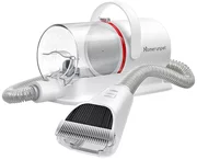 Leiser und leistungsstarker Pflegeset für Fell von Hund und Katze: Saugkraft bis 12.000 Pa, 1,85 l Behälter, viele Aufsätze, Silikonmassage, einfache Reinigung.