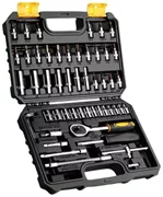 Das DEKO Tools DKMT53 Set enthält 53 Werkzeuge, die Sie zum Beispiel bei der Reparatur Ihres Autos nützlich finden. Sie sind perfekt für die Garage oder Werkstatt. Im Paket finden Sie unter anderem nützliche Steckschlüssel, Inbusschlüssel und Bits, sowie Ratsche 1/4" mit 72 Zähnen. Alle Elemente des Sets bestehen aus strapazierfähigen, schadensfesten Materialien. Die Werkzeuge sind zur einfachen Aufbewahrung und zum Transport in einem praktischen Koffer verpackt.