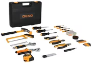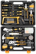 Das Deko Tools Set enthält 102 Werkzeuge, die Sie bei der Montage von Möbeln, Küchenzubehör oder beim Heimwerken verwenden werden. Sie bestehen aus hochwertigem Chrom-Vanadium-Stahl, der zu ihrer Haltbarkeit und Korrosionsbeständigkeit beiträgt. Die rutschfeste Oberfläche sorgt für Komfort und der Koffer erleichtert das Verstauen und Transportieren der Werkzeuge.