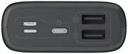 Die Powerbank ist mit 2 USB-Ausgängen ausgestattet - 5V 1A und 5V 2.1A. So können Sie 2 Geräte gleichzeitig aufladen - zum Beispiel ein Tablet und ein Telefon. Sie müssen nicht warten, bis ein Gerät aufgeladen ist, bevor Sie das andere anschließen! Außerdem unterstützt einer der Anschlüsse das schnelle Aufladen mit 2,1 A, sodass Ihr Smartphone oder iPad im Handumdrehen einsatzbereit ist!
