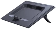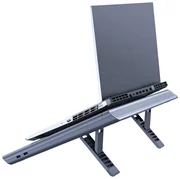 Der Stand wurde entworfen, um den unterschiedlichen Erwartungen der Nutzer gerecht zu werden. Mit Hilfe von ausziehbaren Beinen können Sie die Höhe des Produkts im Bereich von 66 bis 115 mm einstellen. Darüber hinaus wurden sie mit Silikon veredelt, um Stabilität zu gewährleisten. Darüber hinaus verhindert eine spezielle Stütze, dass der Laptop vom Ständer rutscht, und eine Digitalanzeige liefert die wichtigsten Informationen über den Betrieb des Geräts.