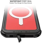The NAUTICAL iPhone 14 Pro Max waterproof case does just that. Designed as a watertight seal full body cover, its an ideal solution for those who love spending time near or in the water. Its also great for underwater photos and videos. The 360-Degree case easily keeps out water, sand, dust, and dirt. As a bonus, the iPhone 14 Pro waterproof case includes a universal belt clip holster with a built-in kickstand. Additional protective features include a built-in screen protector, camera lens cover, and drop protection rated to withstand drops from 12FT. If you need a rugged iPhone 14 case, this is the top choice. Its Face ID compatible, all ports and buttons are easily accessible, oh and it supports MagSafe!